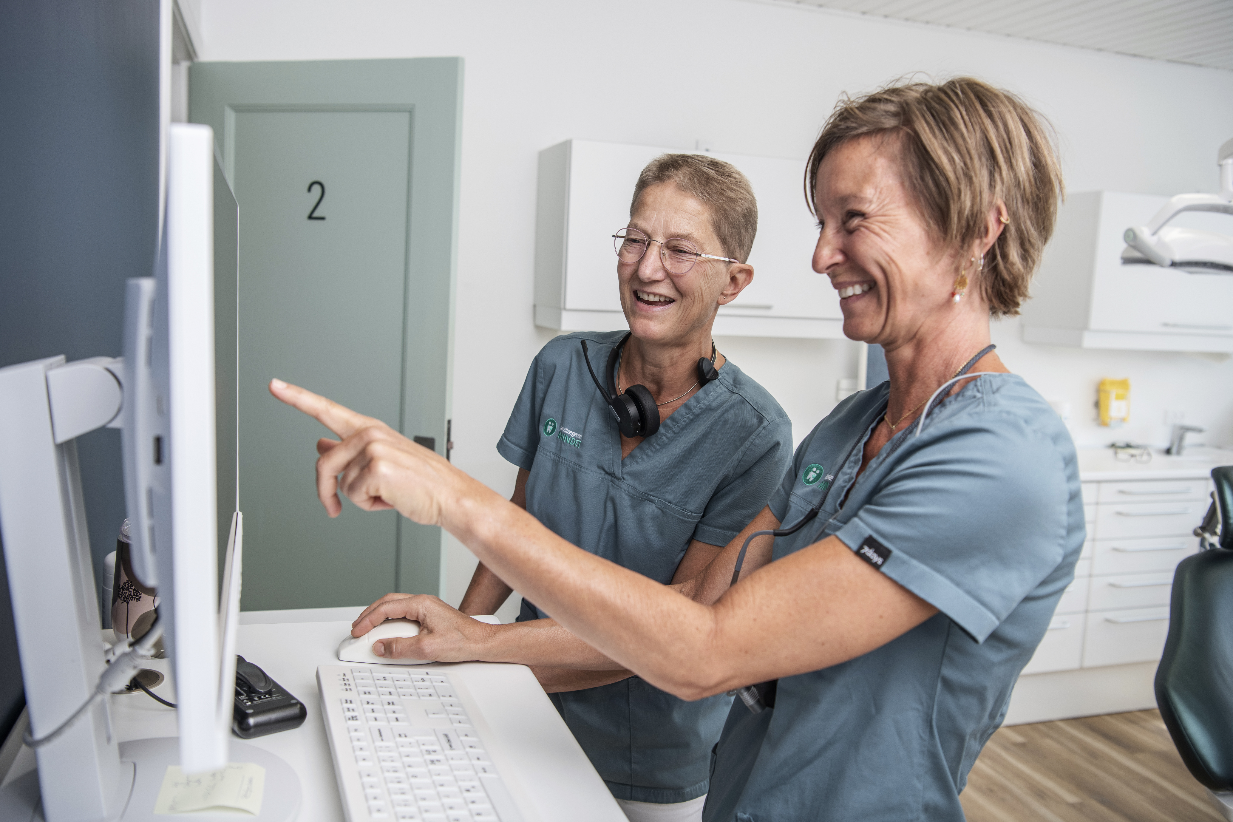 Både tandlæger og klinikassistenter har fejret henholdsvis 15,25 og 35 års jubilæer. Vi kender hinanden og alle der kommer i huset rigtigt godt. Vi er et godt sammentømret team.